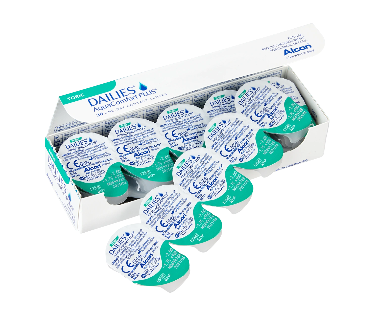 Die DAILIES® AquaComfort Plus™ Toric von Alcon ist eine Ein-Tageskontaktlinse die zum Ausgleich einer Hornhautverkrümmung (Astigmatismus) angepasst wird.