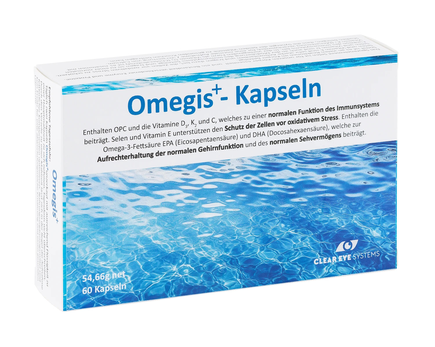 Die Omegis+ Kapseln sind die neueste Produktentwicklung der Firma Clear Eye Systems für die Unterstützung der Augengesundheit. Es handelt sich um ein hochwertiges Nahrungsergänzungsmittel das sich durch die einzigartige Zusammensetzung der Inhaltsstoffe (Omega-3-Fettsäuren, OPC, Vitaminen und Spurenelementen) deutlich von anderen Produkten absetzt. Die verwendeten Rohstoffe sind von höchster Qualität und werden in der Schweiz verarbeitet.