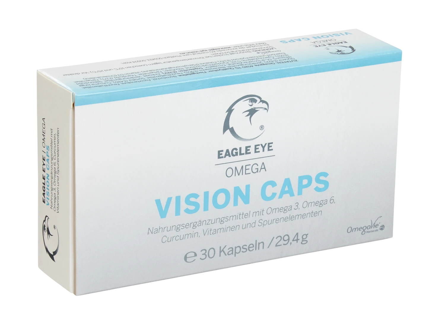 Die Eagle Eye Omega Caps sind ein Nahrungsergänzungsmittel mit Omega 3, Omega 6, Curcumin, Vitamin C, E und D, Vitamin B-Komplex (B2, B6, B9 (Folsäure), B12), Zink und Spurenelementen das speziell für die Aufrechterhaltung der Sehkraft entwickelt wurde. Der spezielle Tränenfilm-Komplex sorgt für dafür dass die Beschwerden bei trockenen und gereizten Augen gelindert werden.