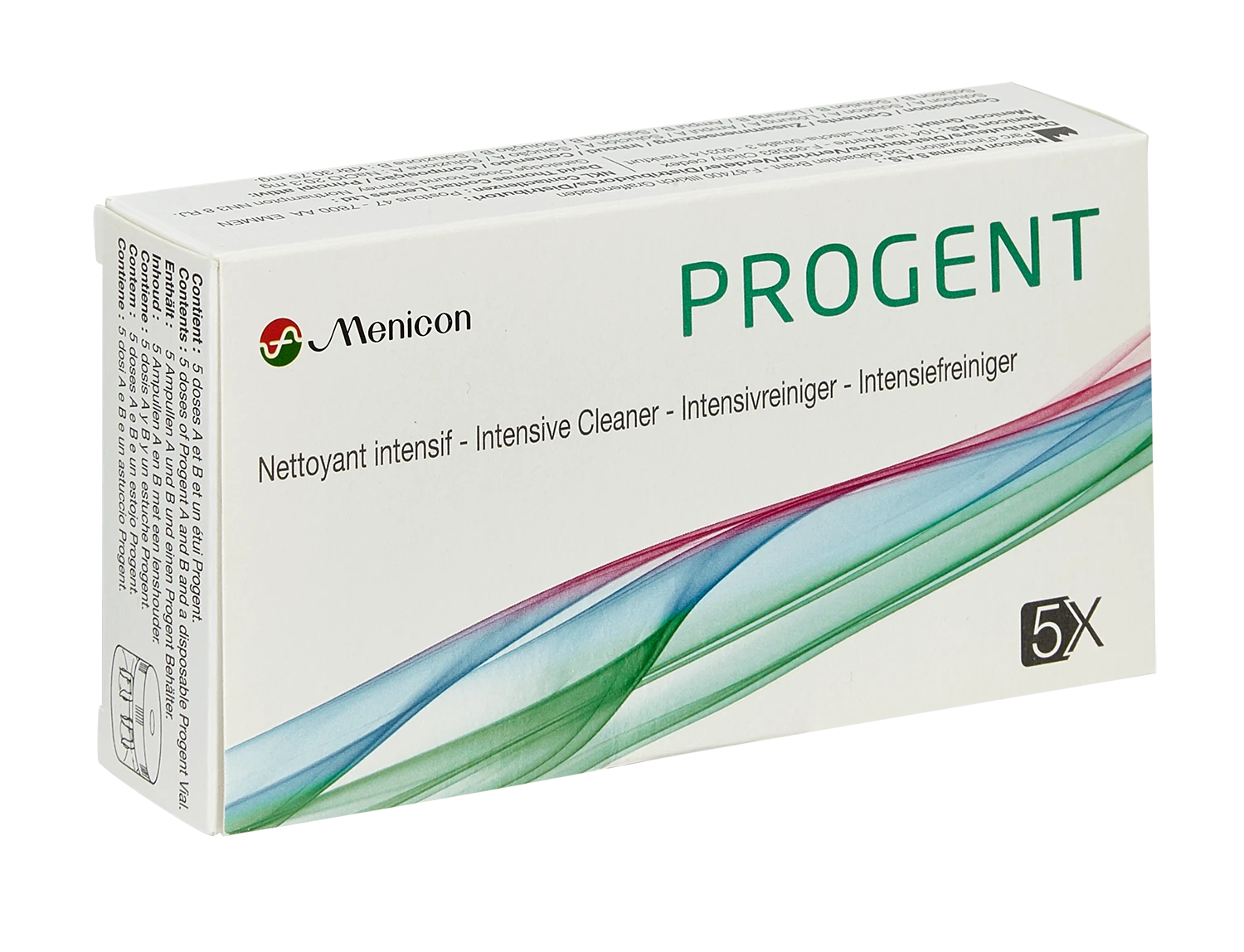 Progent Intensivreiniger wird zur Proteinentfernung und Desinfektion von formstabilen Kontaktlinsen verwendet. Der Reiniger ist nachweislich höchst effektiv gegen Bakterien, Viren, Pilze, Akanthamoeben.