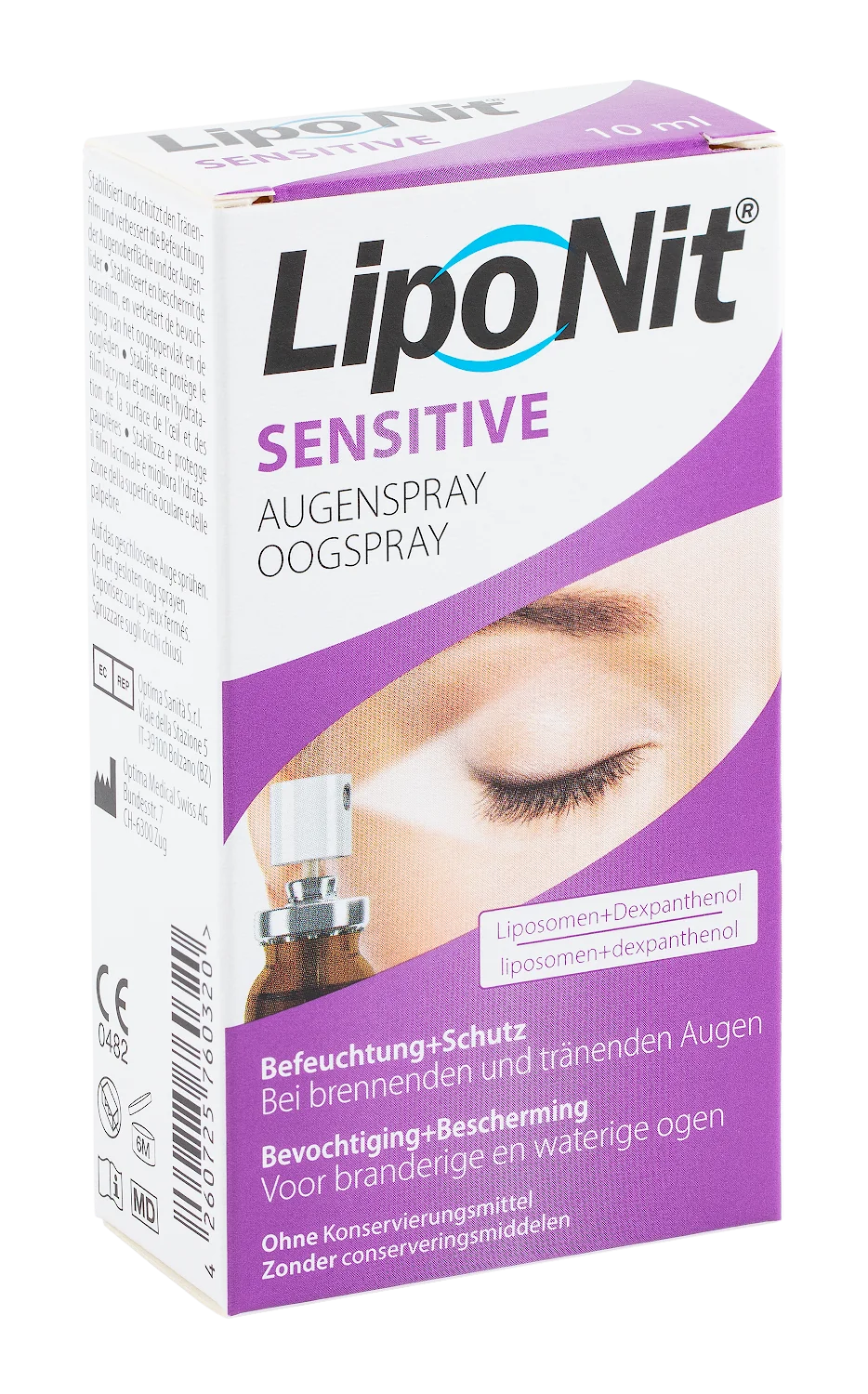 Das Lipo Nit® Augenspray Sensitive gehört heute zu den erfolgreichsten Produkten des Unternehmens. Wirkung und Anwendung des Sprays sind weltweit einzigartig. Der defekte Tränenfilm wird durch Liposome ausgebessert und somit an der Ursache behandelt. Das macht das Spray zum perfekten Helfer im Kampf gegen trockene Augen. Dein besonderer Vorteil: Durch den feinen Sprühnebel kann das Spray auch bei Augen-Make-up problemlos angewendet werden.
