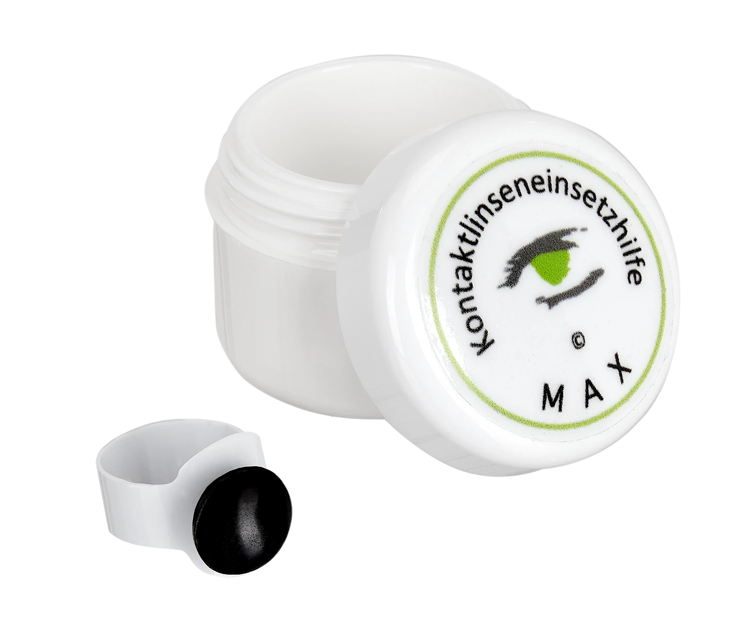 Mit der Einsetzhilfe MAX wird das Aufsetzen der Kontaktlinsen erleichtert, weil sich der Kontaktlinsenträger ganz auf das Festhalten der Augenlider konzentrieren kann.